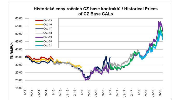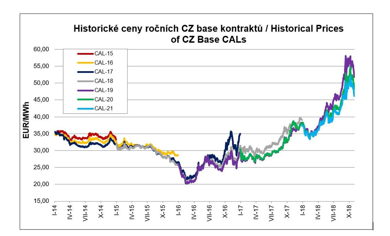 Pro příklad můžeme uvést nárůst tzv. základního ročního pásma (baseload) obchodovaného na burze PXE pro rok 2019. Cena obchodovaná před rokem byla na úrovni 30 EUR/MWh, dnes se ten stejný produkt nakupuje za cenu zhruba dvojnásobnou. Cena elektřiny pro koncového odběratele se ale skládá zhruba z jedné třetiny z ceny vlastní komodity (silové elektřiny), proto nárůst pro konečného spotřebitele není tak dramatický.