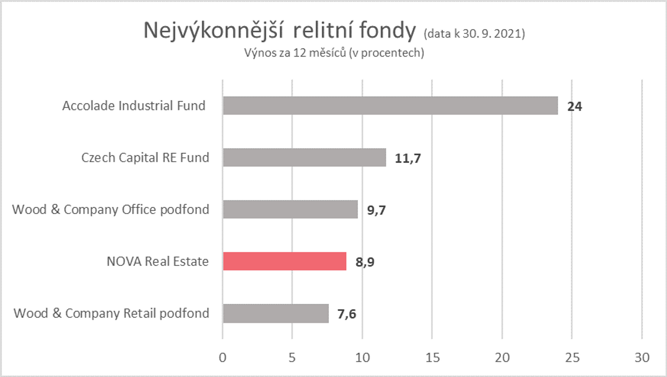 Fond NOVA Real Estate spravovaný investiční společností REDSIDE se s výkonností 8,9 % za posledních 12 měsíců umístil mezi 5 nejvýkonnějšími realitními fondy.