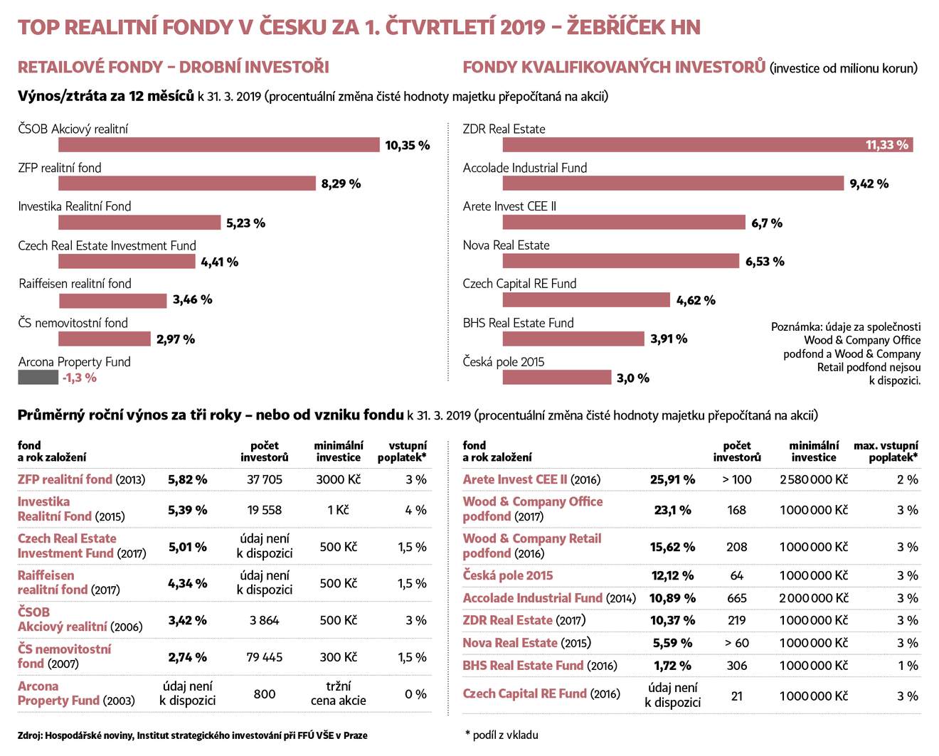 Hospodářské noviny ve spolupráci s Institutem strategického investování (ISTI) při pražské Vysoké škole ekonomické od loňska provozují specializovaný webový portál Investujme s přehledem nemovitostních fondů, které aktivně hledají investory na českém trhu. Web pravidelně zveřejňuje žebříček Top realitní fondy HN. Ten sleduje výkonnost dvou typů těchto investičních nástrojů: fondy pro širokou veřejnost a fondy zaměřené na movitější investory (fondy kvalifikovaných investorů − FKI). Portál také přináší přehled dluhopisů, které vydávají tuzemské developerské společnosti s cílem získat finance pro svůj byznys. Od letošního roku portál zveřejňuje žebříčky realitních fondů po čtvrtletích. Dosud byly publikovány přehledy za celé kalendářní roky 2017 a 2018.